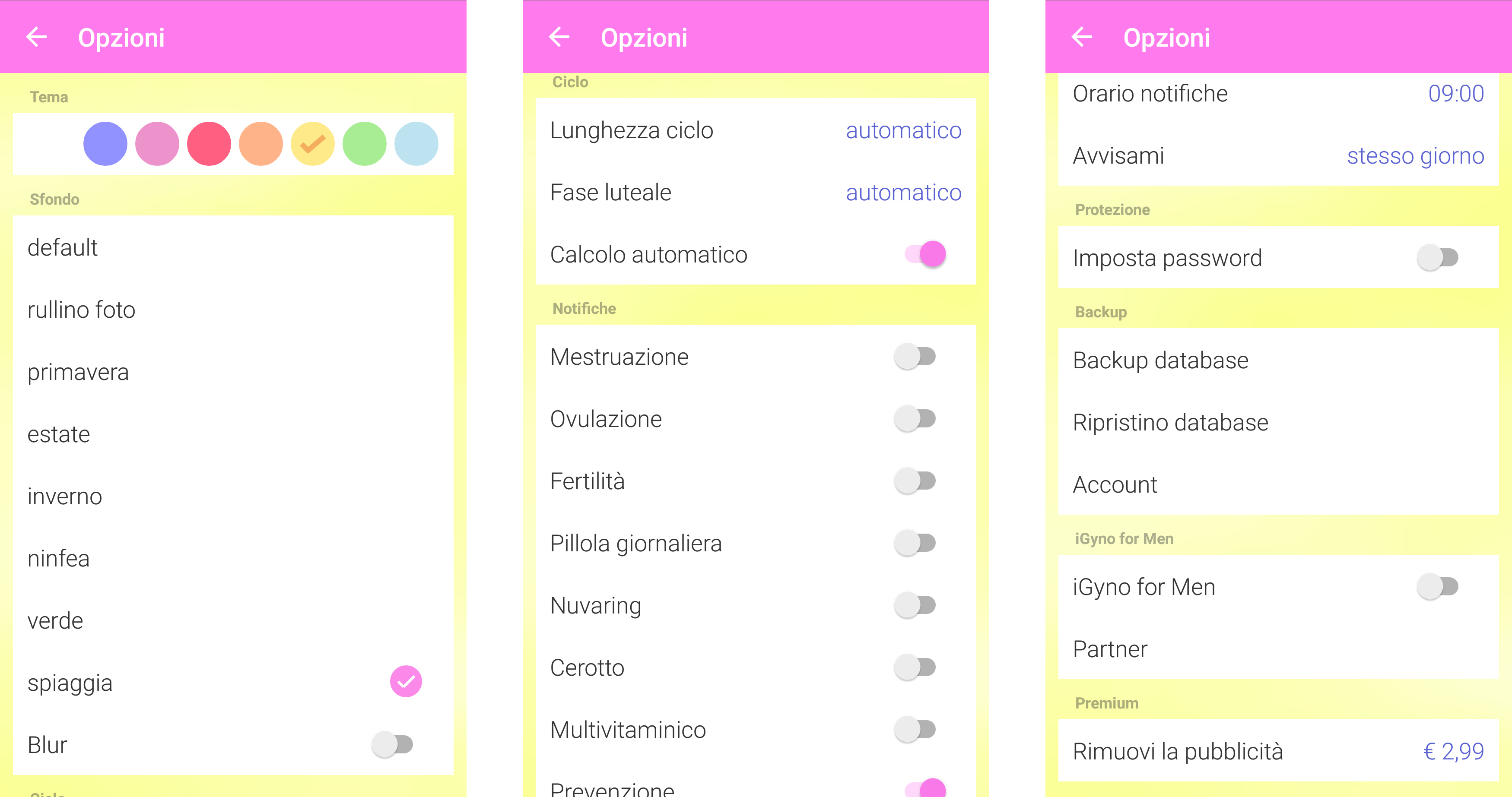 iGyno: opzioni