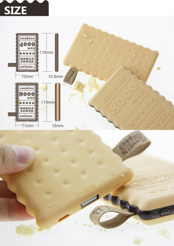 Batteria esterna d’emergenza per cellulari e altri gadget forma di biscotto al cioccolato. Potenza: 4000 mAh (€18,29, su AliExpress)