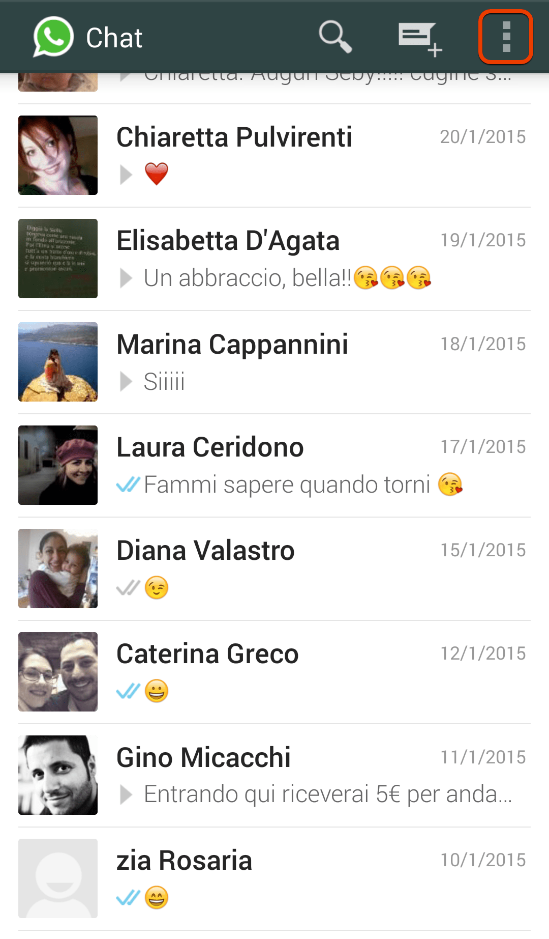 5. Come per magia sul tuo computer si caricherà la lista dei tuoi contatti e potrai chattare con loro usando la comoda tastiera del tuo PC! Funziona anche l’invio di emoticon e di immagini e potrai vedere le informazioni relative al contatto, cliccando in alto sui puntini sospensivi.