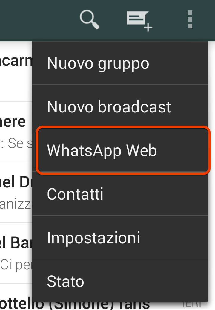 3. Seleziona la voce WhatsApp Web: