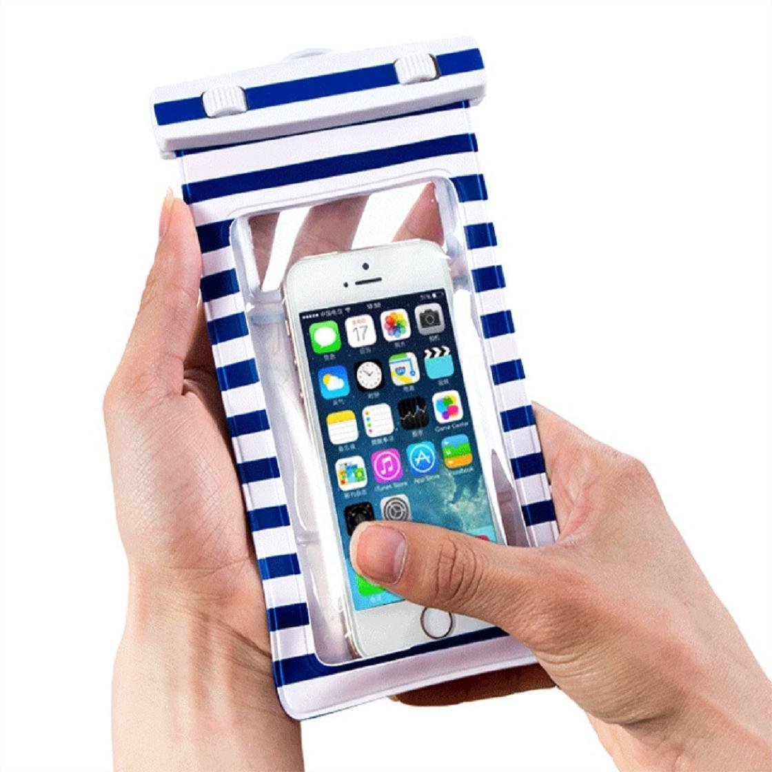 La cover a righe marinare. Compatibile con vari modelli di cellulare tra cui iPhone e Galaxy, garantita a tenuta stagna fino a 20 m (1,90 euro, su Amazon)
