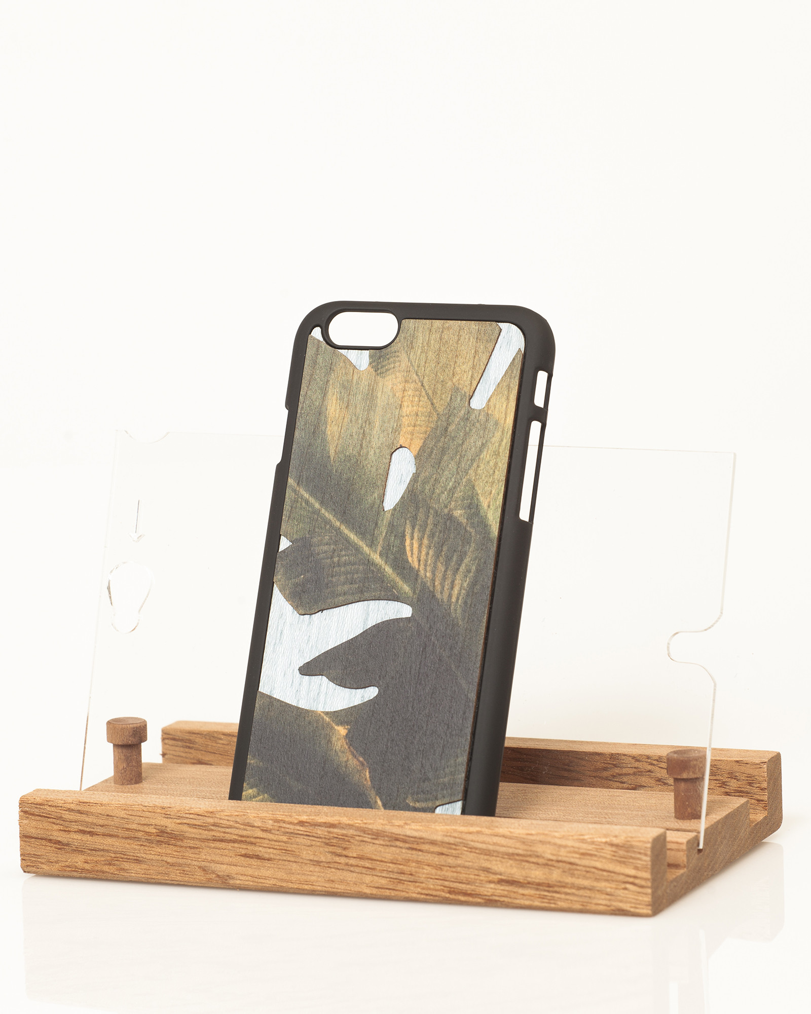 Tutte le cover di Wood’d sono confezionate in una custodia di legno che si trasforma in uno stand